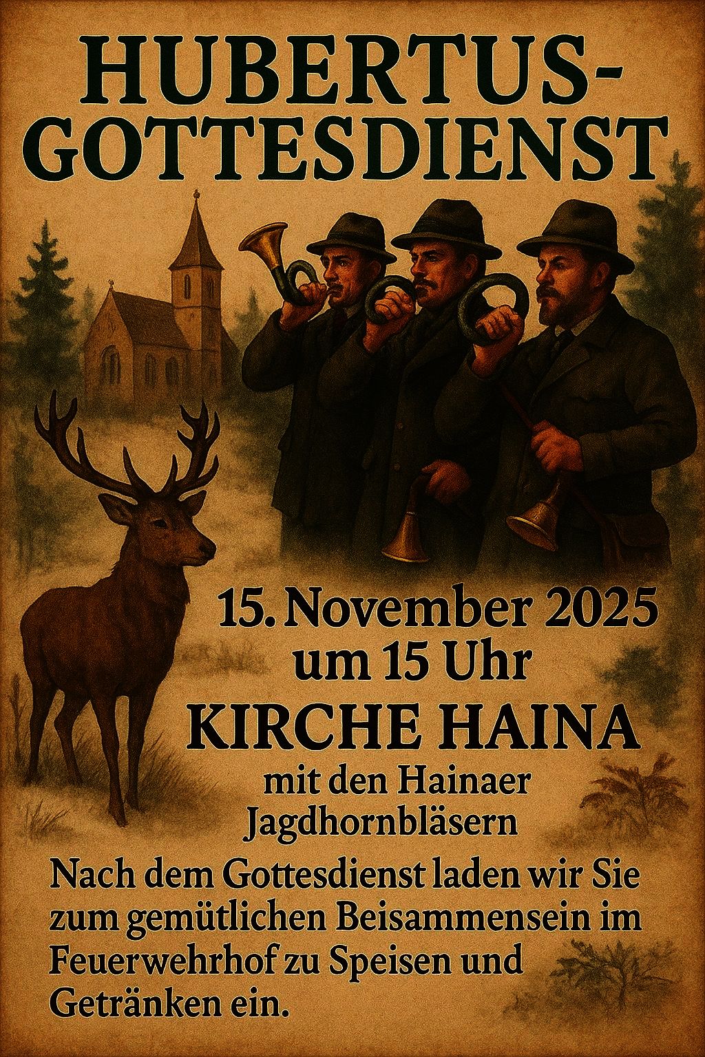 Die Hubertusmesse 2025 findet am 15.11., um 15 Uhr in der Kirche Haina statt.